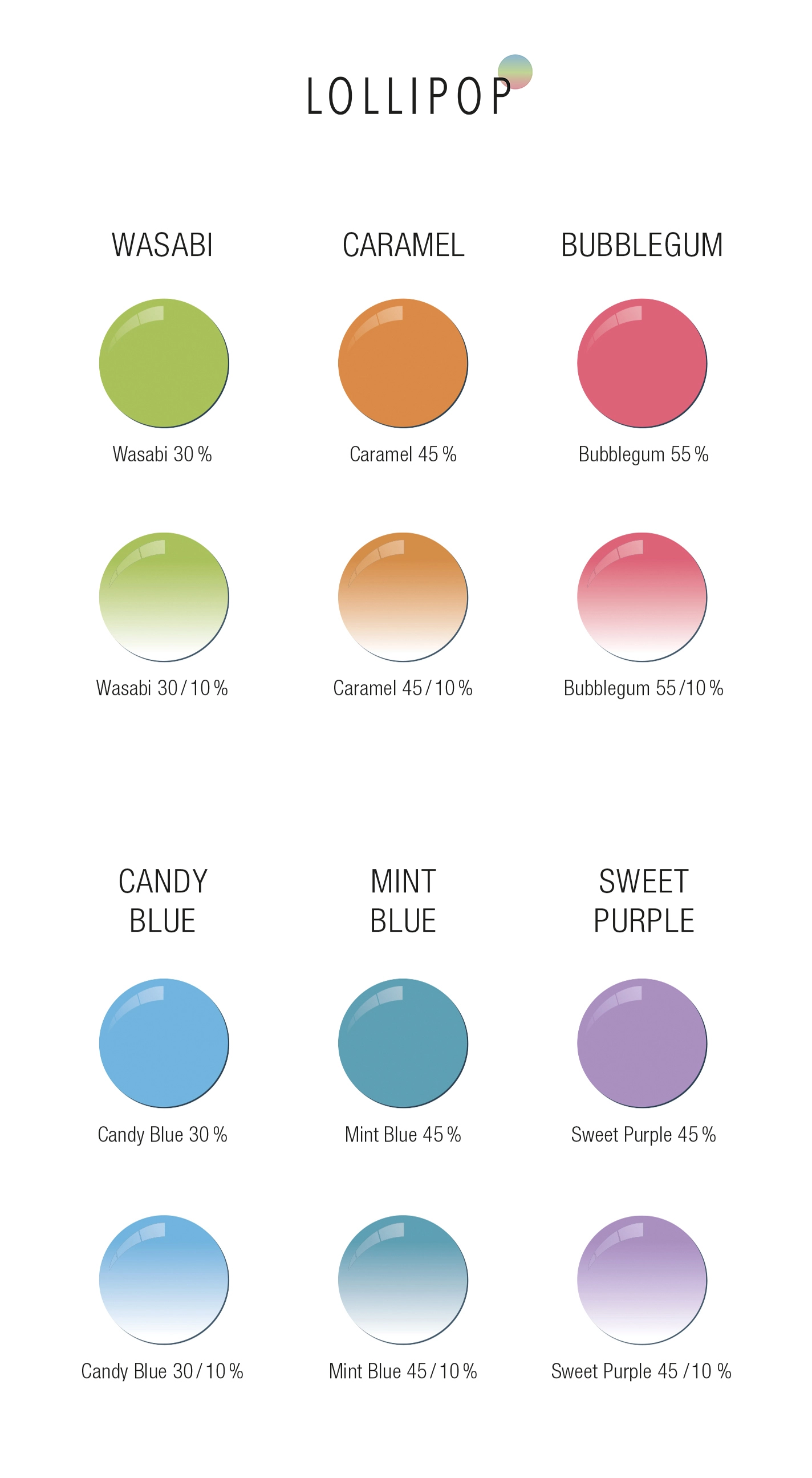 Vores sprudlende, sukkersøde farvetoner i ensfarvet og gradueret understreger induvidualitet med stil & humor.