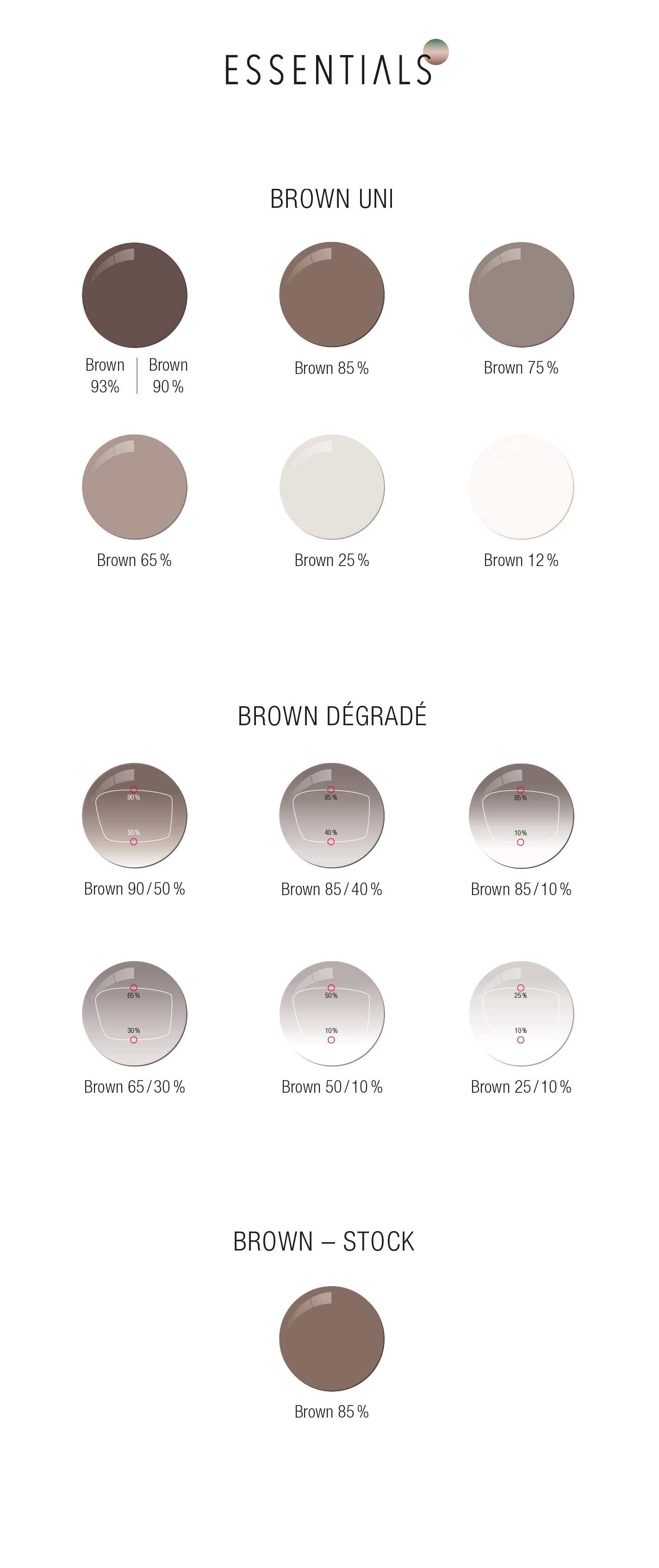La gamma Essentials di Optiswiss è composta dai nostri colori evergreen e classici. Disponibili in versione uniforme o sfumata con vari gradi di assorbimento, per l’eleganza di tutti i giorni.