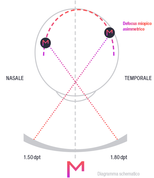 positivo più elevato nell’area tempiale. Ciò si traduce in un defocus crescente nell’area retinica nasale.